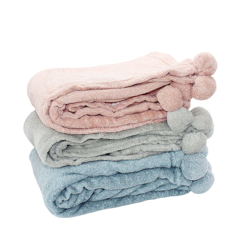 Wholesale Comfort Throw Kition Coral Fleece Blanket With Pom Poms